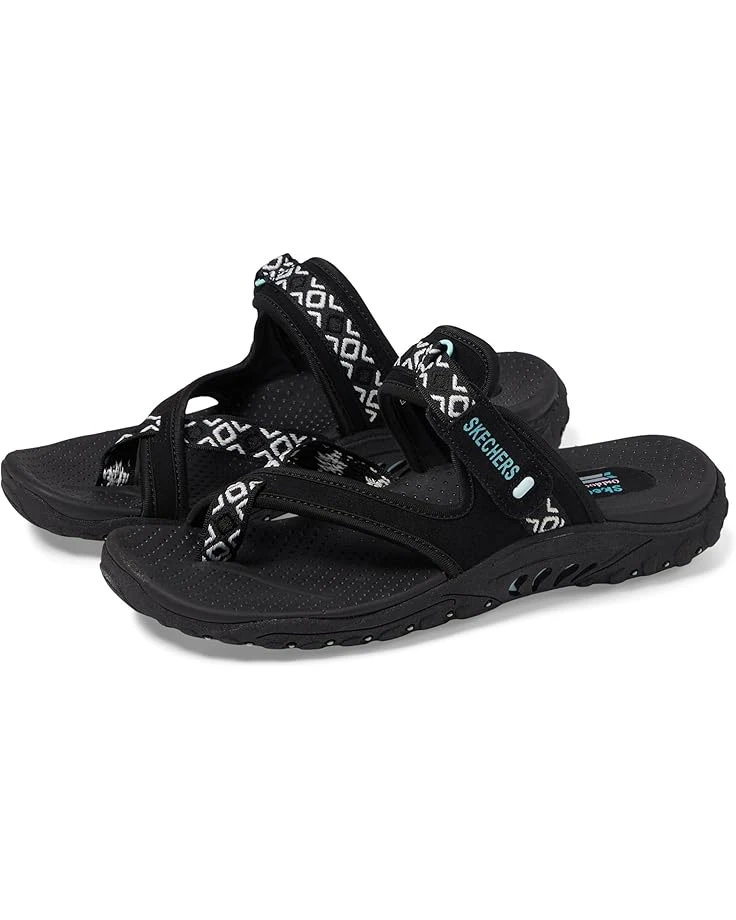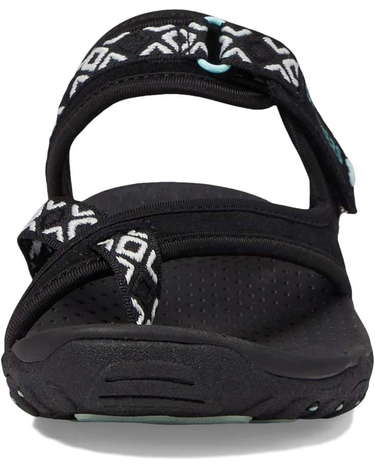 - With a toe ring design, suede finish, patterned web fabric, and easy slip-on styling, the SKECHERSยฎ Reggae – Trailway sandal exudes modern style and comfort.
