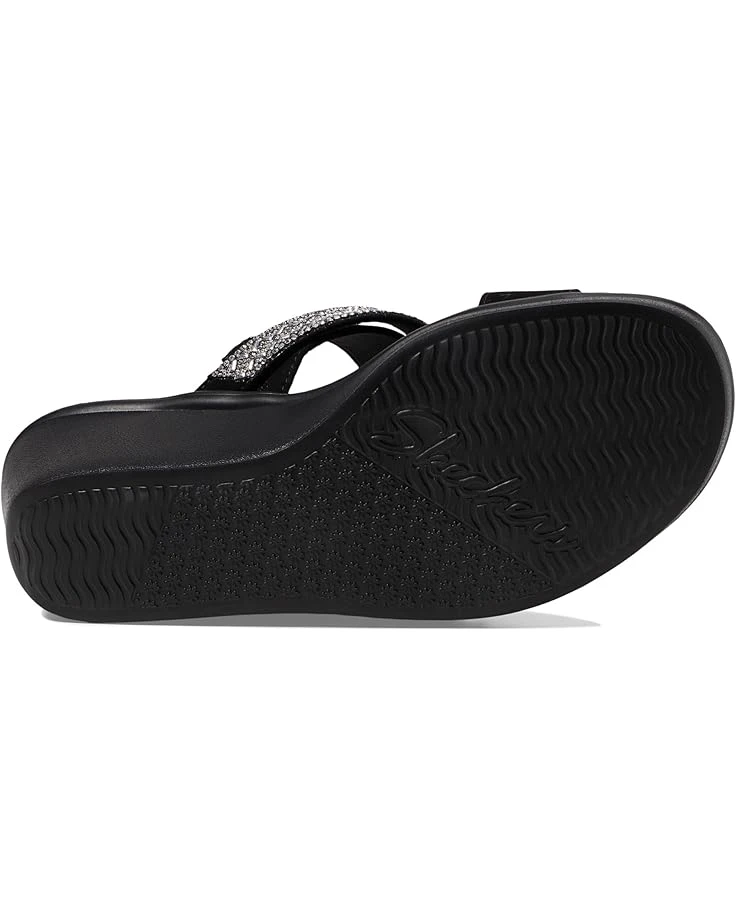 - Raise the glam quotient while experiencing lasting comfort wearing SKECHERS® Rumble On – Social Glam Heels crafted with a mitobuck upper, fabric lining, and luxe foam® cushioned comfort footbed. The heels come in an elegant design detailed with strappy upper with embellishments and a platform heel.
