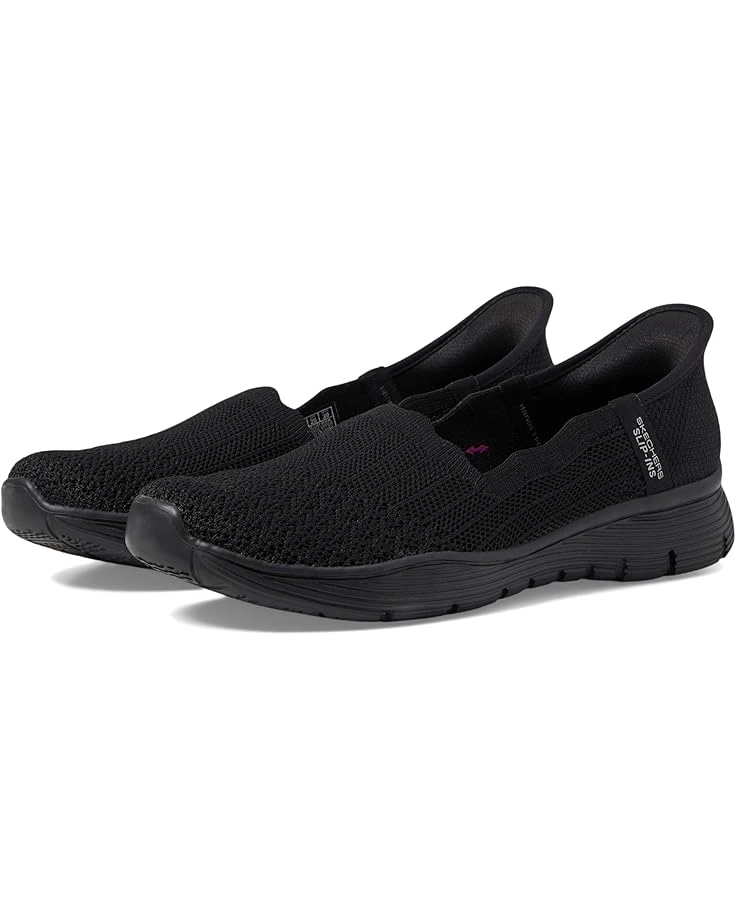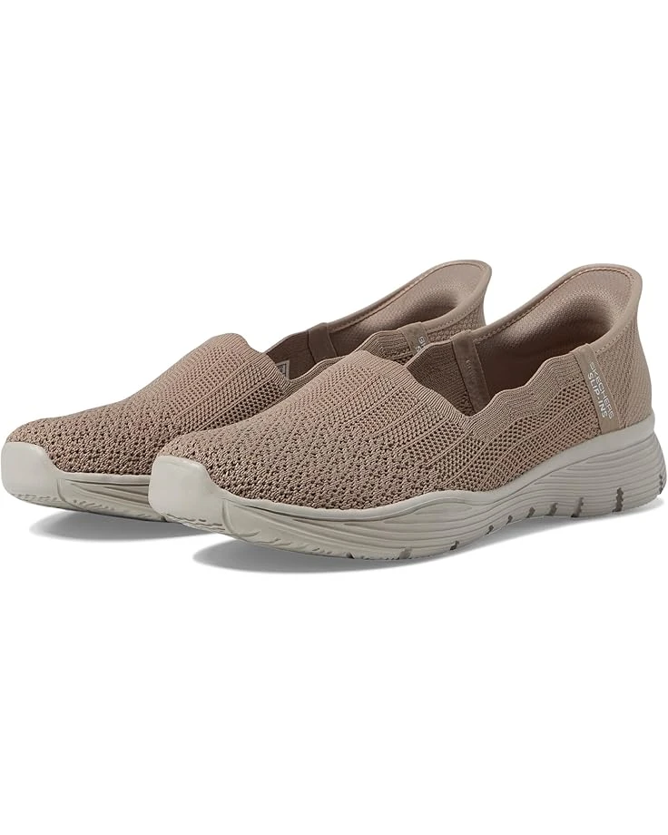 - New views of comfort arrive in the stylish SKECHERSยฎ Seager – Believe It Hands Free Slip-Ins shoes. These casual shoes feature a Stretch Fit engineered knit upper and a cushioned Skechers Air-Cooled Memory Foam comfort insole for all-day comfort. The faux suede lining provides added durability. Machine washable and comfortable, these slip-on shoes are ideal for your everyday wear.