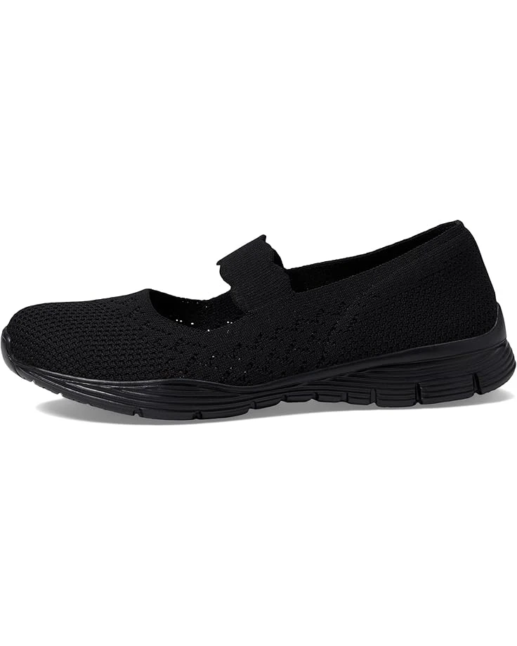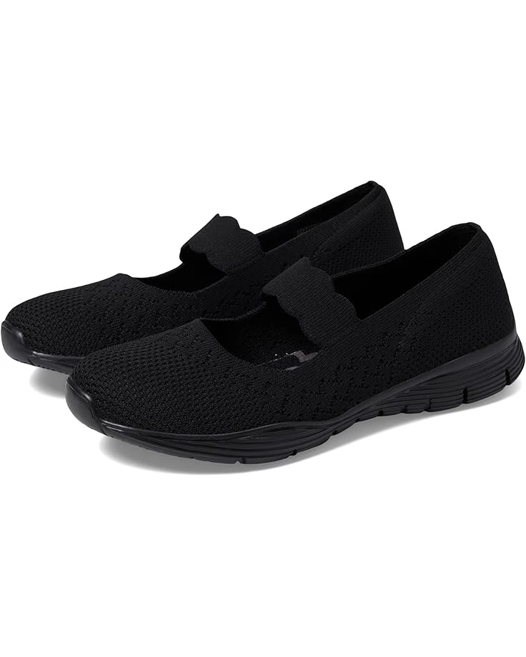 - The SKECHERS® Seager – Power Hitter shoe will allow your feet to feel free as the breeze with a flat-knit upper, nearly one-piece design, and a mary-jane instep strap with a scalloped trim.