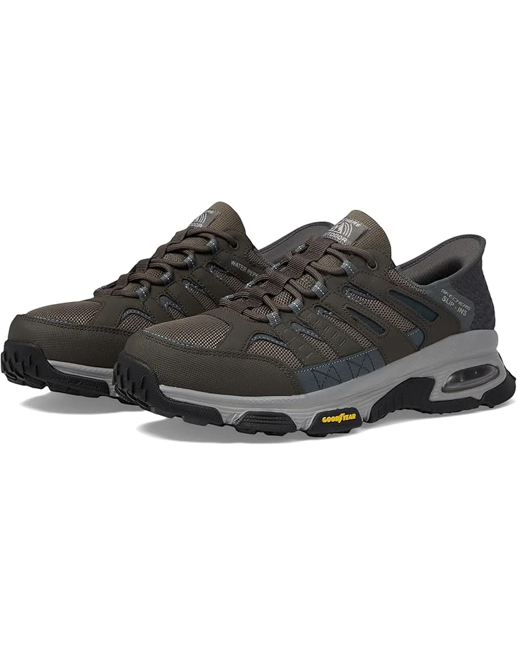 - Enjoy outings with friends wearing the SKECHERSยฎ Skech-Air Envoy Emissary Hands Free Slip-Ins. Designed with our exclusive Heel Pillowโข, this outdoor trail design features a water-repellent leather, synthetic and mesh upper, and Skechers Air-Cooled Memory Foamยฎ insole for comfortable fit and feel.
