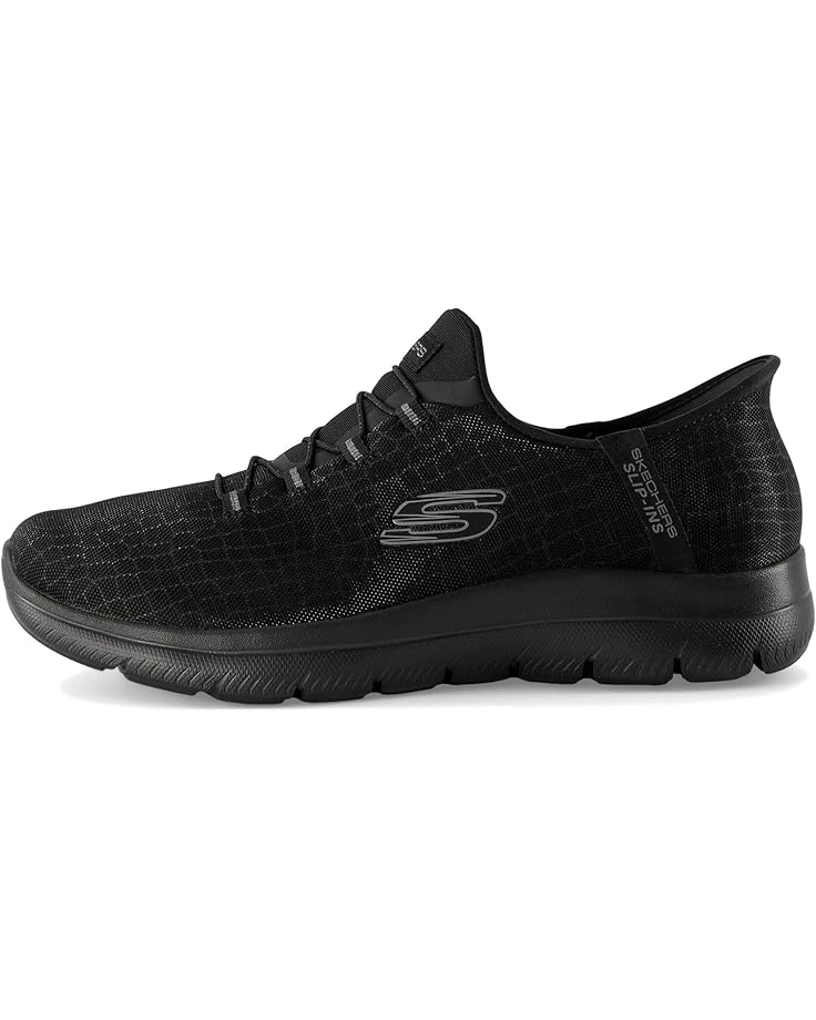 - Add a little glam to your step wearing the SKECHERS® Summits-Classy Night Hands Free Slip-Ins. Designed with an exclusive Heel Pillow, these shoes feature a snake-patterned sparkle mesh upper with fixed stretch laces that make them a comfortable footwear choice. The cushioned Skechers Air-Cooled Memory Foam® comfort insole cushions each of your steps. Machine washable, these lace-up sneakers are perfect to pair with different styles and outfits.