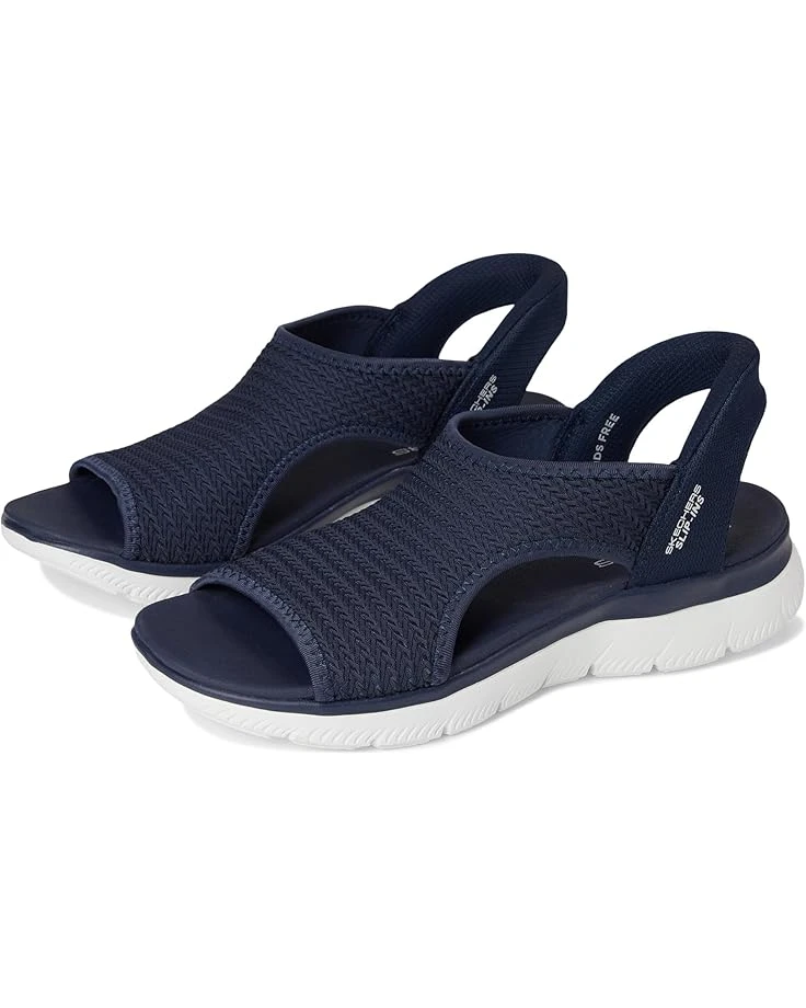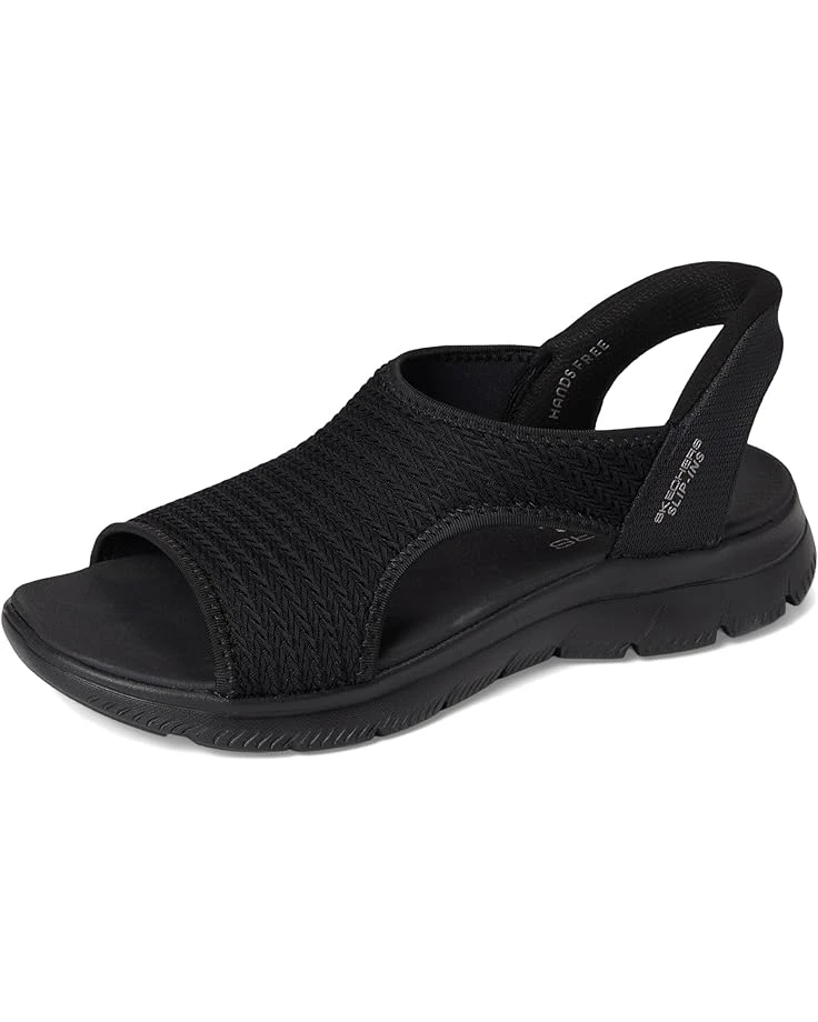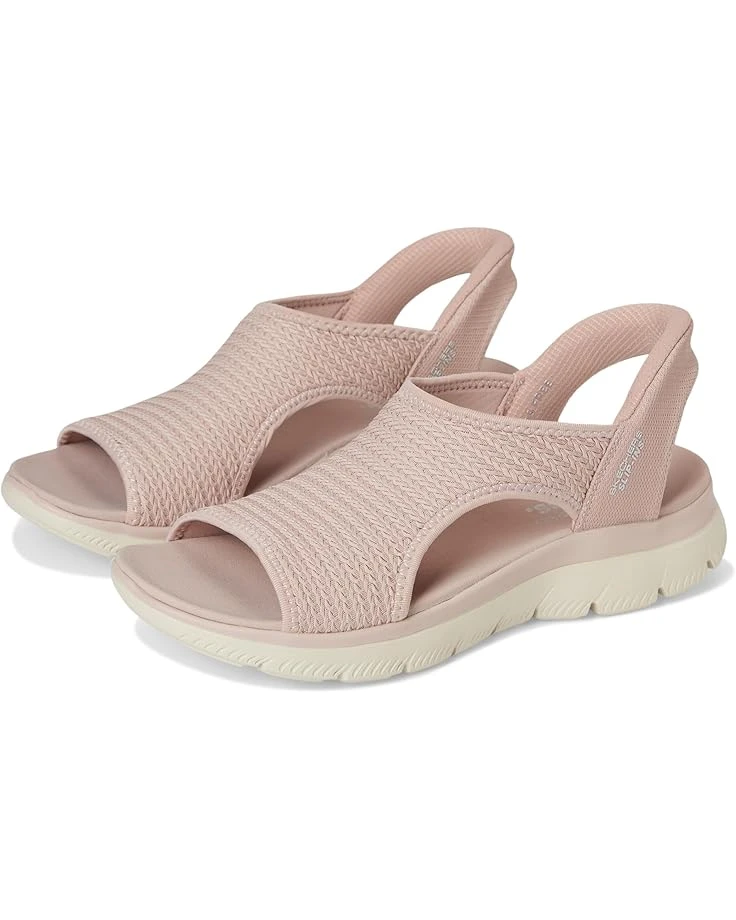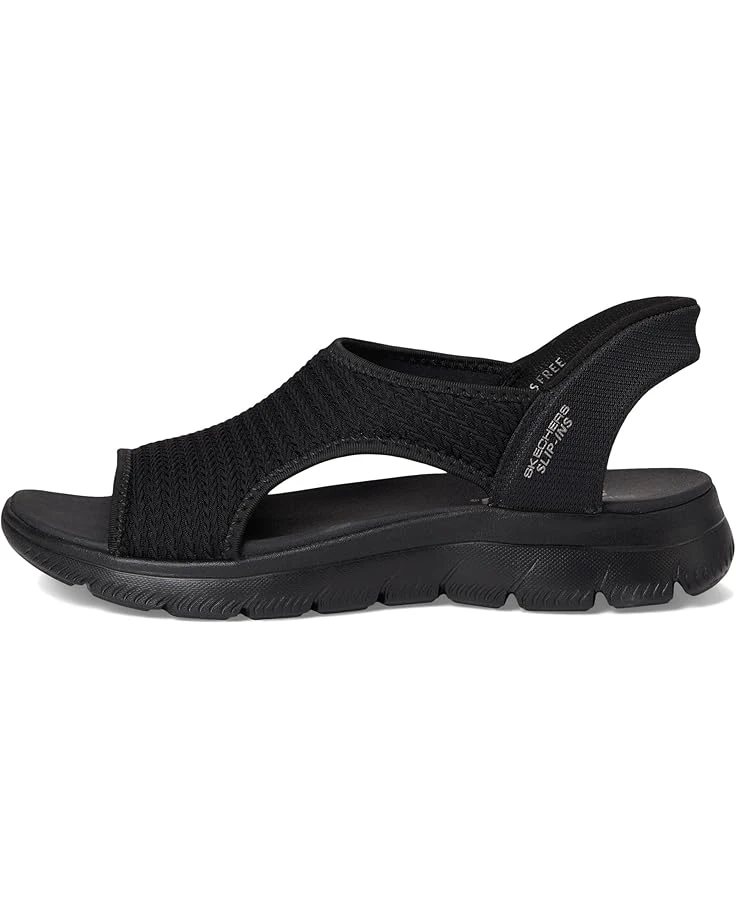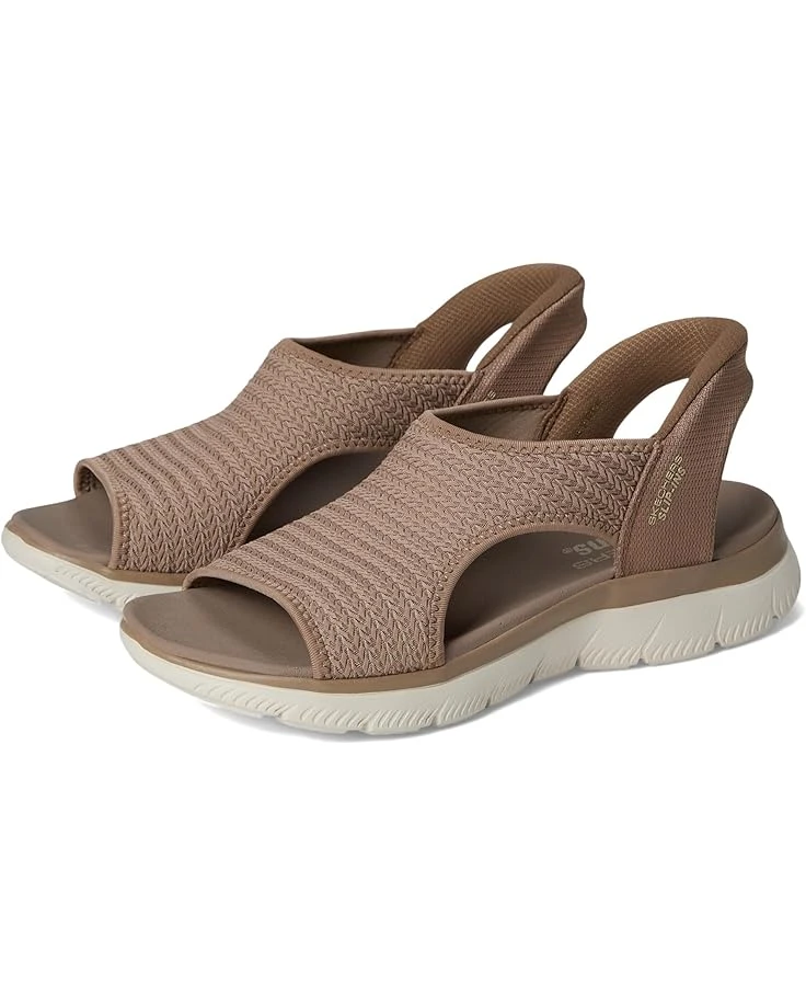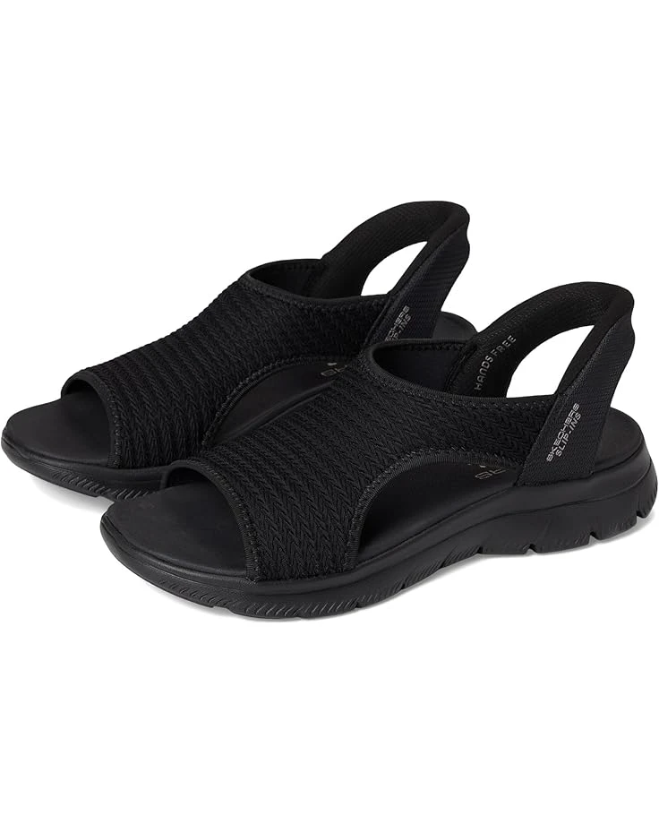 - Enjoy sunny days in breezy comfort with Skechers® Hands Free Slip-ins: Summits – Sweetly Evolved. Designed with the Heel Pillow™, this slingback sandal features a stretch fabric strap upper with a cushioned Yoga Foam footbed.