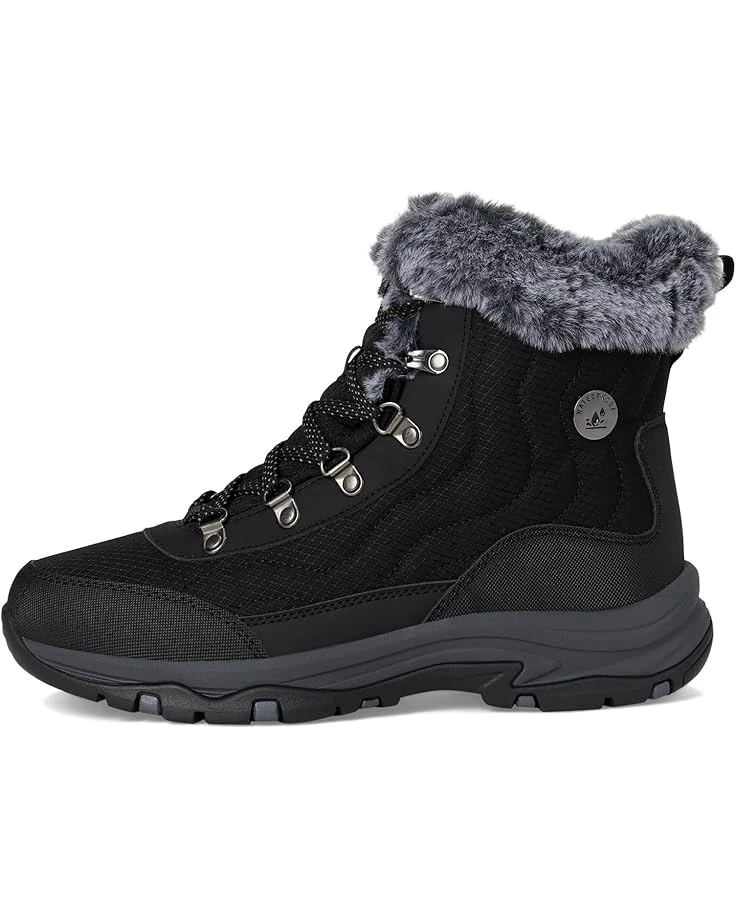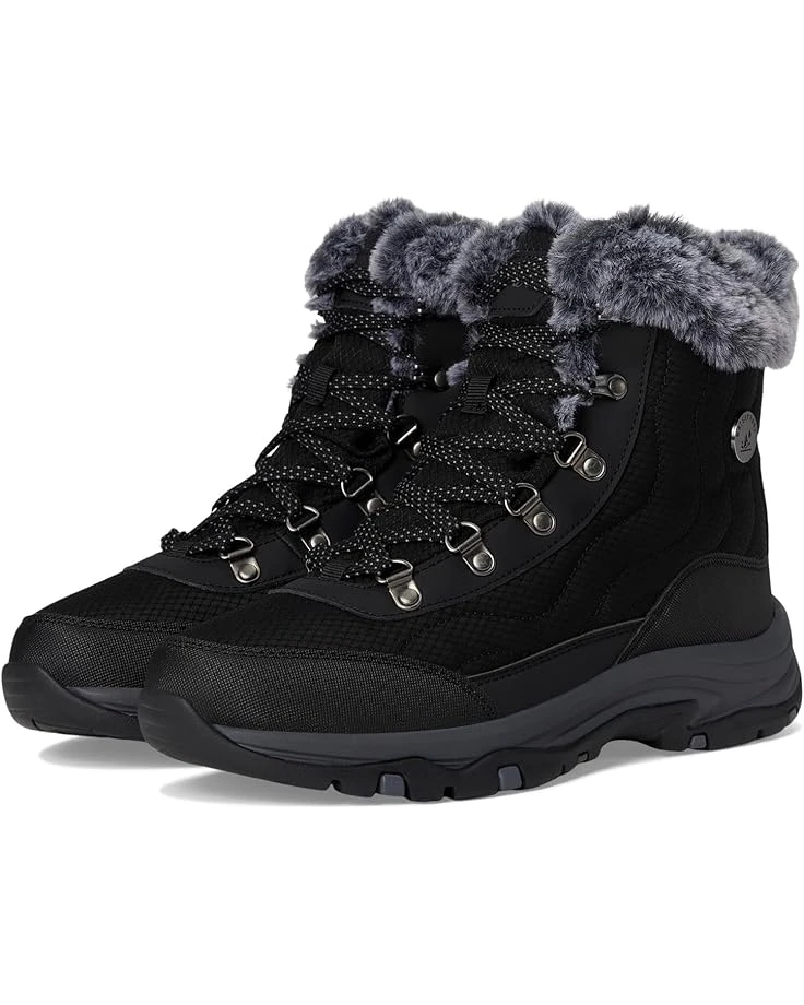 - Keep it cozy this season in rugged comfort wearing the SKECHERS® Trego – Stormie. The lace-up hiking boots feature waterproof synthetic and mesh upper, faux-fur lined trim and Skechers Air-Cooled Memory Foam® cushioned comfort insole. The ankle-high shoes have fabric lining, waterproof seam-sealed design, and round toe design.