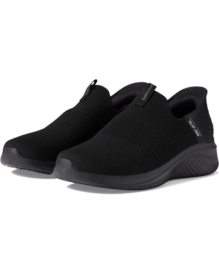 - Step into easy-wearing style and comfort with Skechers Slip-ins: Ultra Flex 3.0 – Smooth Step. Featuring a Stretch Fit engineered knit upper with a Skechers Slip-ins heel panel and a cushioned Skechers Air-Cooled Memory Foam insole. footbed.