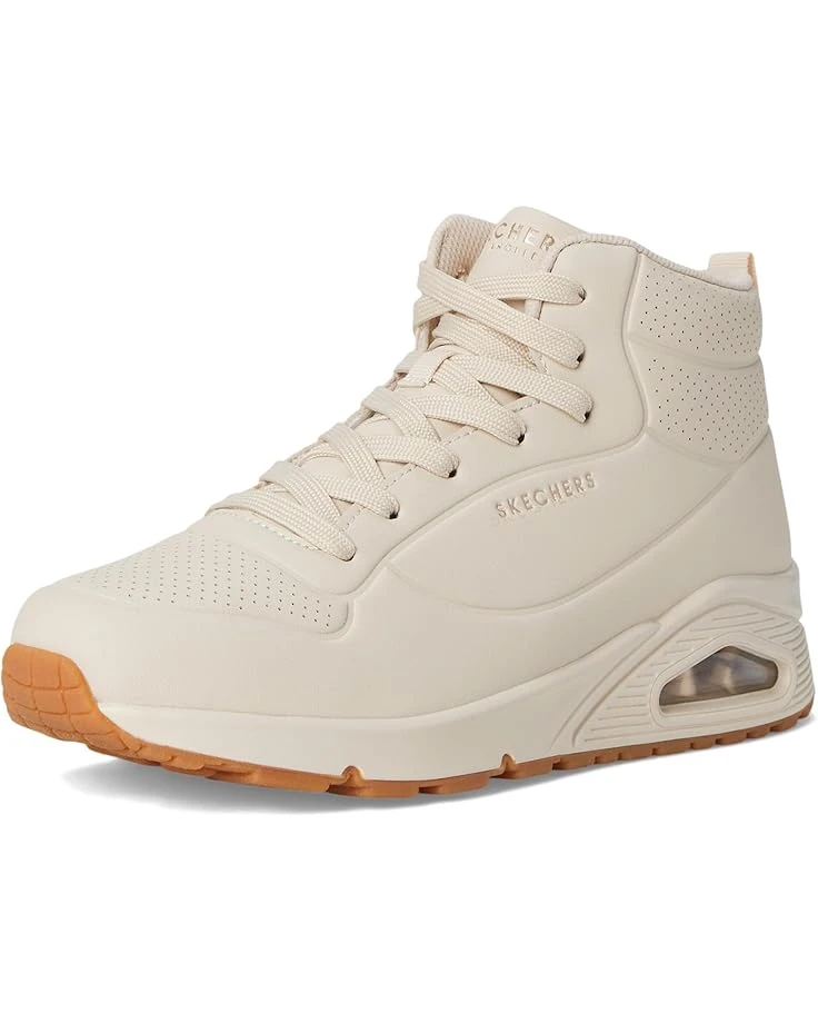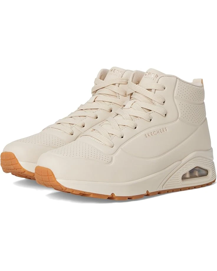 - A high-top fashion sneaker, the SKECHERSยฎ Uno-Stand High shoes are designed with a Skech-Air visible airbag midsole for long-lasting comfort. The polyurethane upper of these sneakers features a lace-up closure for a perfect fit. These lace-up shoes are made of Skechers Air-Cooled Memory Foam comfort insole and polyester lining. Cushioned and stylish, these sneakers are perfect to pair with different outfits and styles.