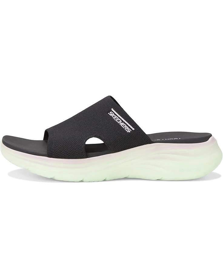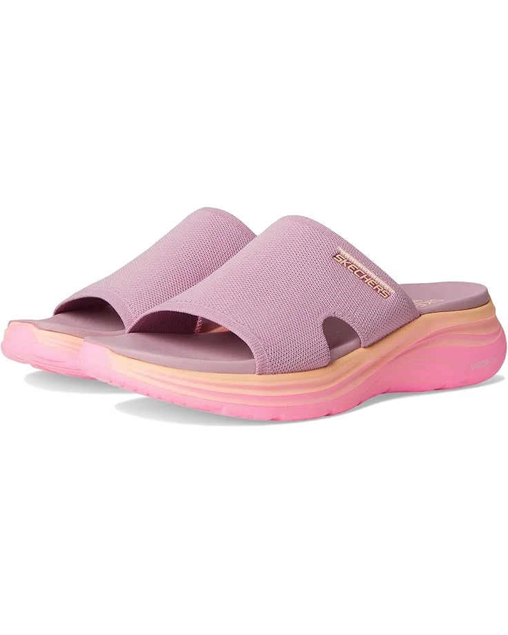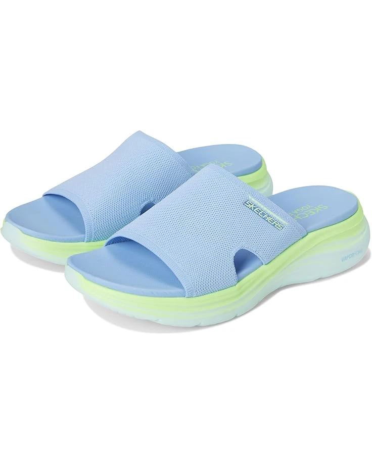 - Explore the great outdoors in boundless comfort wearing SKECHERSยฎ Vapor Foam – Coastal Sunset Slides. The ombre knit recovery slide features a Yoga Foam cushioned comfort footbed, leather lining, an ultra-lightweight Vapor Foam cushioning insole, and a lightweight flexible shock-absorbing Reggae midsole. The sporty casual and water resistant slide is crafted with 100% vegan materials and ensures an easy slip-on fit.