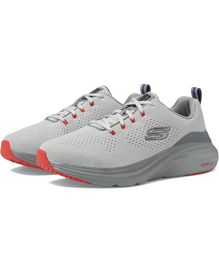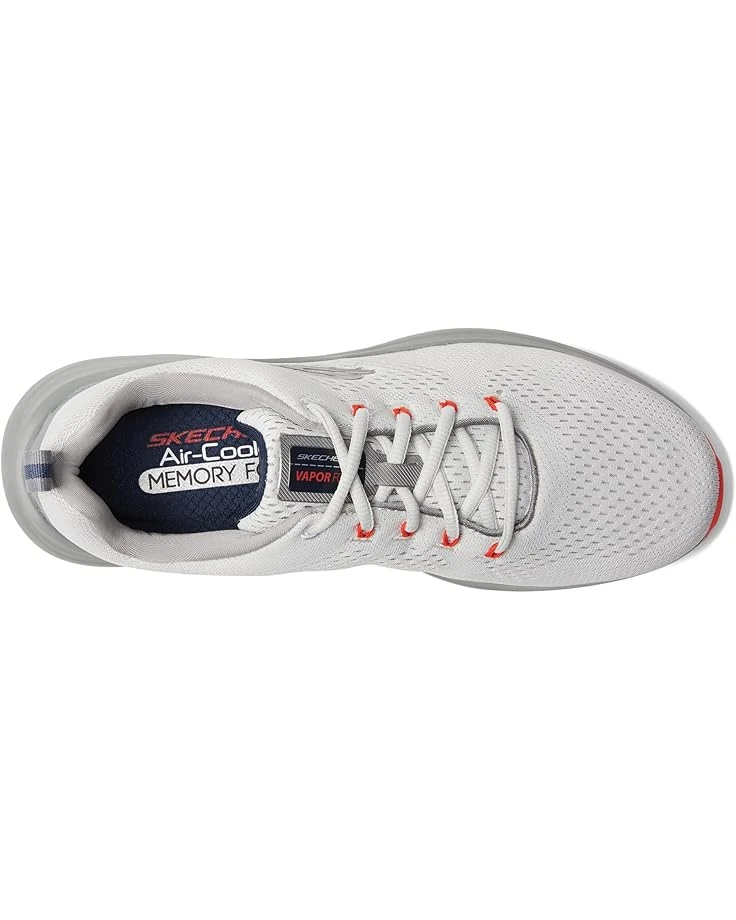 - Take on sports, games, or training sessions with much more comfort wearing SKECHERS® Vapor Foam Shoes. The shoes feature an engineered mesh or synthetic upper for better brethability, a textile lining, and air cooled memory foam footbed for a comfy vibe throughout the day. These are exquisitely fashioned with a round toe shoape, laces for adjustability, and ankle pull tab for donning & doffing.
