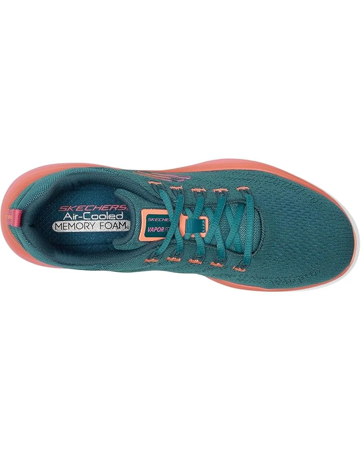 - Cloud-like comfort meets sleek style in the Skechers® Vapor Foam-Summer Journey! This versatile lace-up sneaker features a chic jacquard mesh upper and a painted midsole, blending fashion with function. Experience all-day ease with the Air-Cooled Memory Foam® insole, designed for superior cushioning and breathability. The rubber outsole ensures durable traction, while the vegan materials and machine washable design offer convenience and eco-friendly choices. Unlined for a lightweight feel and featuring a round toe, this sneaker is perfect for any adventure.