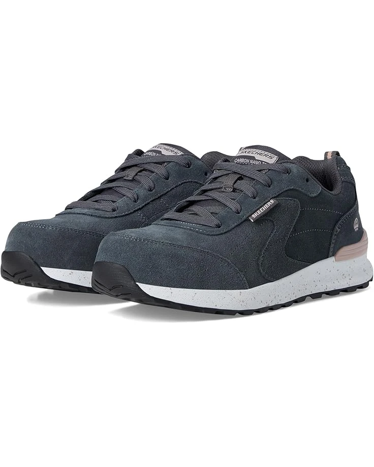 - Get ready to tackle any job with confidence choosing the SKECHERSยฎ Work Bulklin – Haidly Comp Toe sneakers. These sporty slip-resistant work sneakers feature safety toe to keep you protected all day long. The genuine suede upper and polyester lining ensure durability and comfort, while the Skechers Air-Cooled Memory Foamยฎ cushioned insole provides all-day support. With a non-metallic, metal detector-friendly design and ESD technology to dissipate static electricity, these sneakers are perfect for electricity-sensitive workplaces.