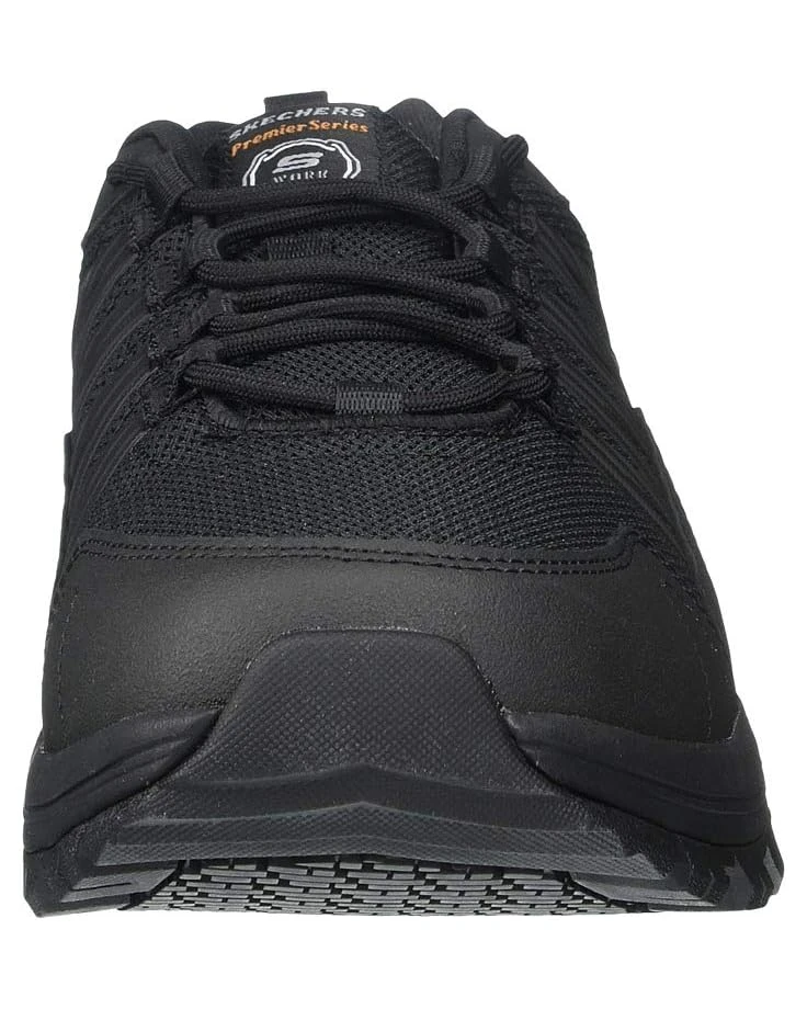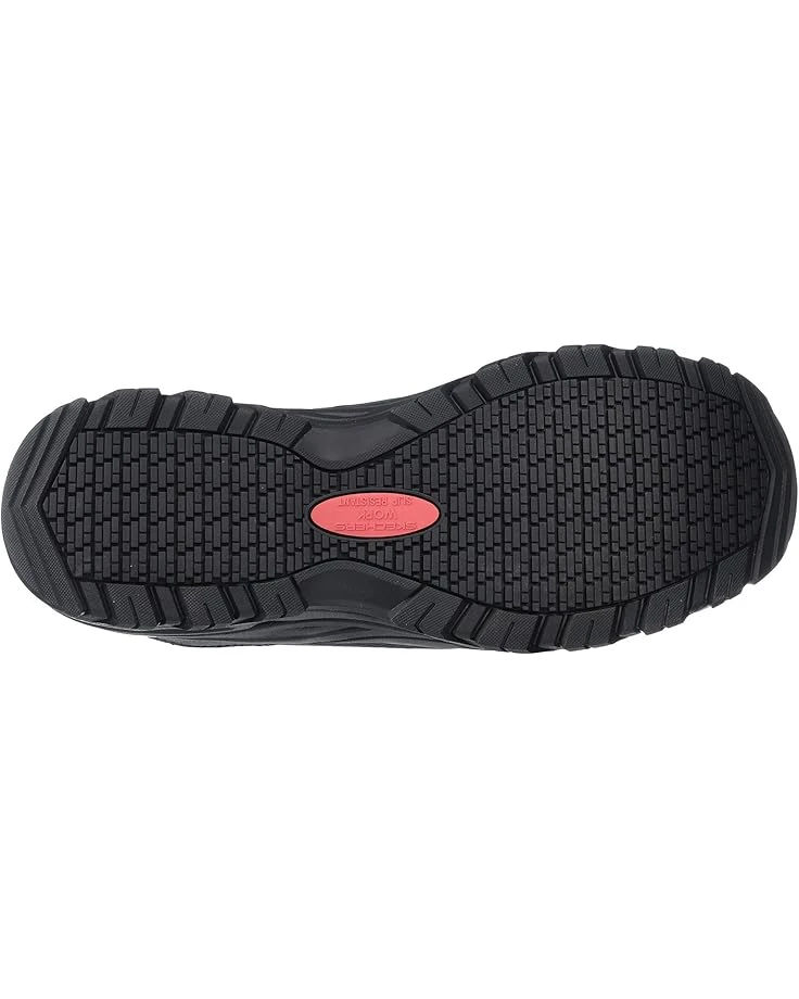 - The Skechers® Work Fannter slip-resistant work shoes are an essential piece when you’re on your feet all day for work. The Relaxed Fit® design provides a spacious fit for feet that spread over the course of a day.