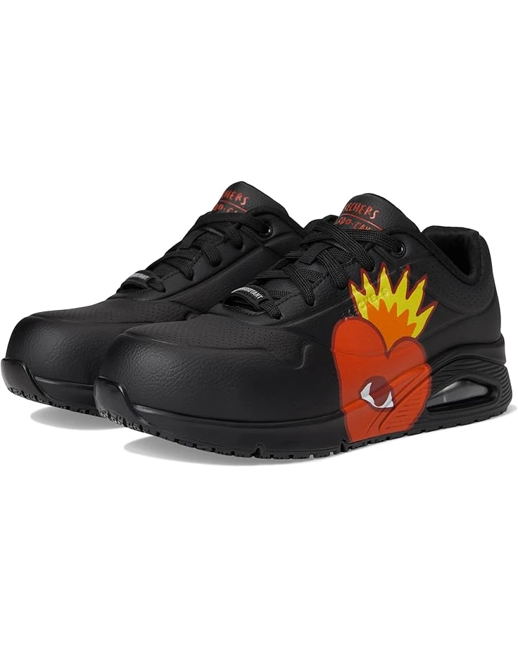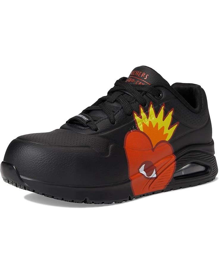 - The SKECHERSยฎ Work Ricardo Cavolo Uno SR – Taun Comp Toe shoes are lightweight composite toe sneakers that are slip-resistant. These low-top shoes are made of a Skechers Air-Cooled Memory Foam cushioned comfort insole and polyester lining. The premium suede upper is styled with a lace-up design for a secure fit. Breathable and stain-resistant, these lace-up sneakers are perfect for your outdoor adventures.