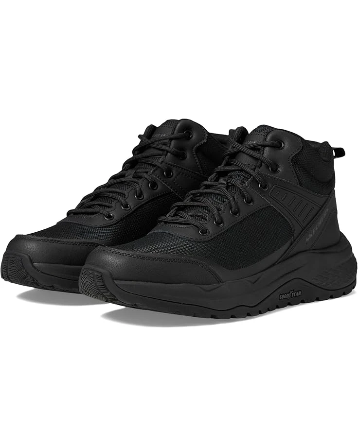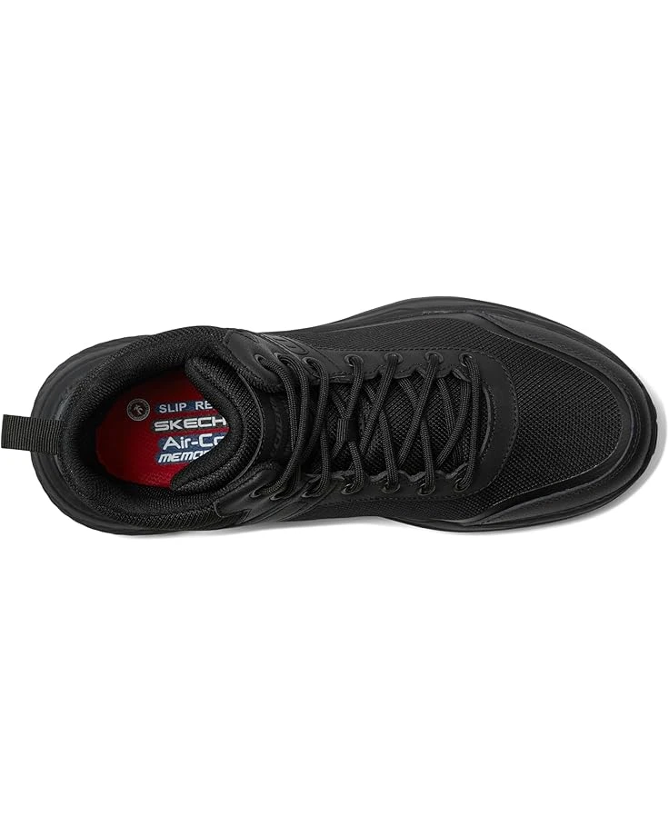 - Get ultimate protection and support while your work wearing the SKECHERS Work® Street Treader – Scorron Shoes in stylish mid-top silhouette with lace-up closure. The slip-resistant shoes feature a breathable leather and synthetic upper, lightweight breathable fabric lining, and an Air-cooled Memory Foam® insole. The ankle pull tab on the shoes allows easy donning and doffing.