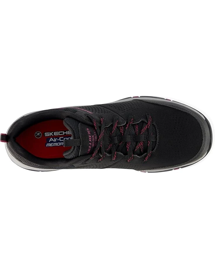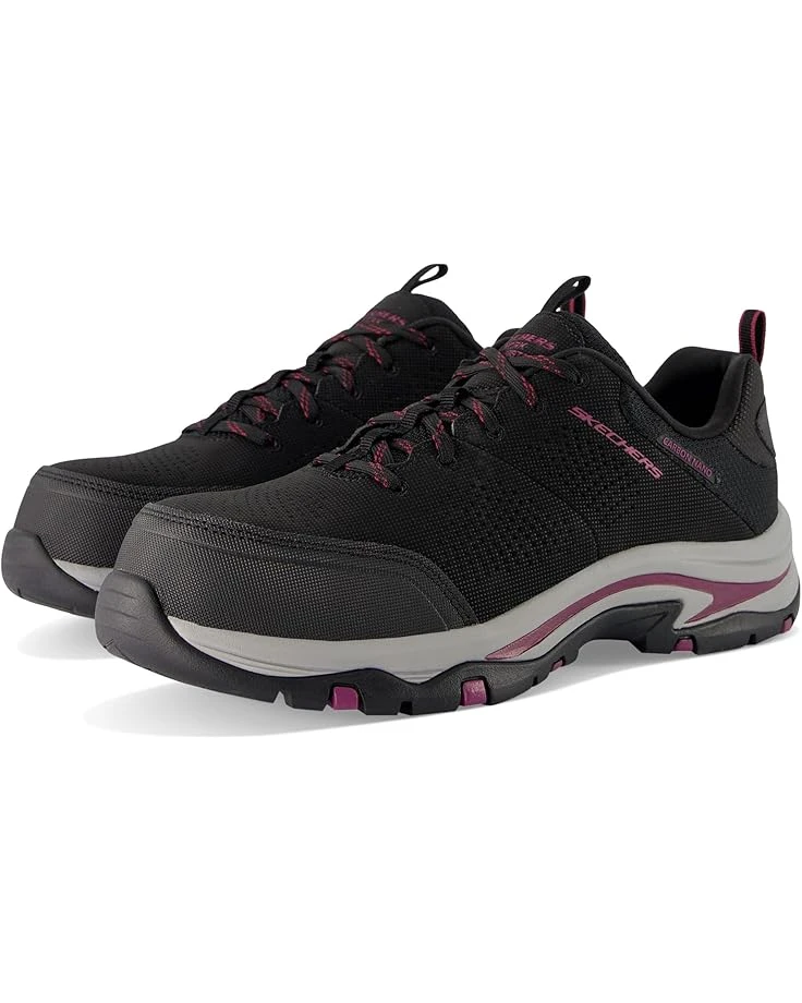 - Lightweight and breathable, the SKECHERS® Work Trego – Astallet Comp Toe shoes are designed with Skechers Air-Cooled Memory Foam® cushioned insole and polyester lining that keep your feet cool and comfortable. The mesh upper of these sneakers features a lace-up closure for a secure fit. Featuring a non-metallic, metal detector-friendly design, these lace-up shoes are the perfect choice for your outdoor rides and adventures.