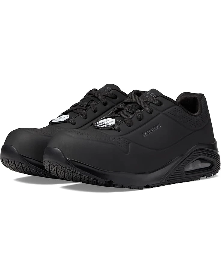 - SKECHERSยฎ Uno SR – Deloney Comp Toe sneakers will keep you safe and protected during work.